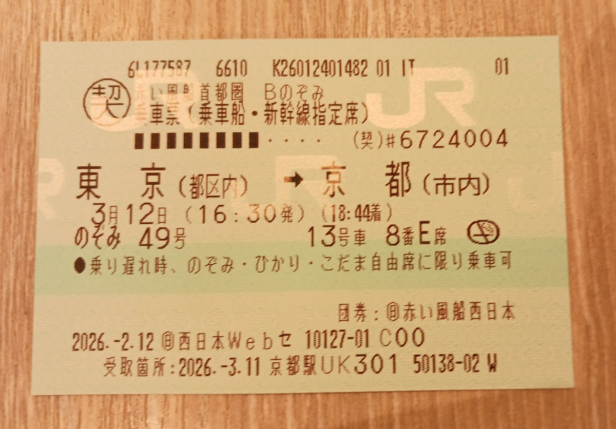 さて、行きたかった場所には全て行くことができたので、そろそろ東京駅に戻ります。家族や友達へのお土産や、今夜のご飯あたりを買っていると、あっという間に新幹線の出発時刻が近づいてきました。行きは「ひかり」でしたが、帰りは「のぞみ」。今回使ったtabiwaトラベルのプランですと、400円の追加料金を払うと「のぞみ」に乗ることができます。