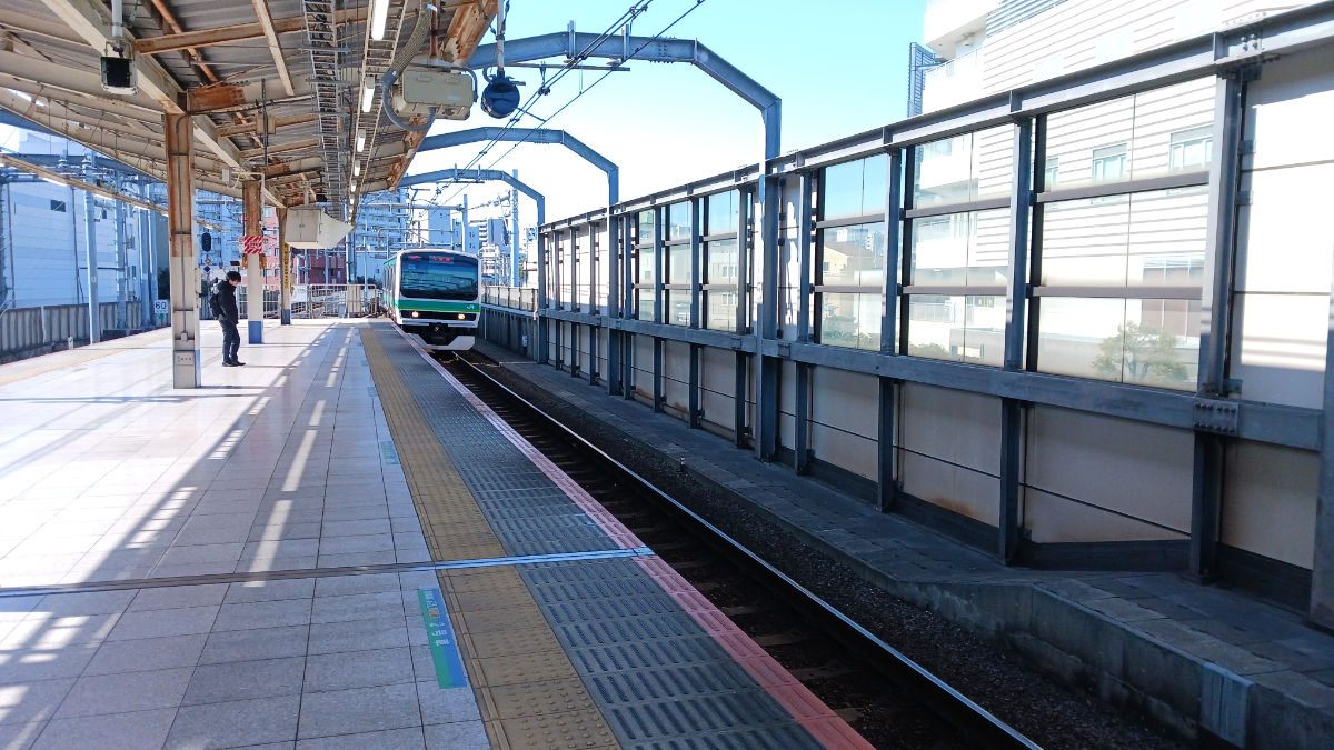 いろいろと乗り継ぎつつ続いてやってきたのは田端駅。田端大橋から首都圏の電車を眺められたりしないかな〜なんて思いながらやってきた訳なんですが、実際のところはそれほどよく見えなかったです。ただ新幹線は高架になっているので、豪速で空の側を駆け抜けていくのが見えました。