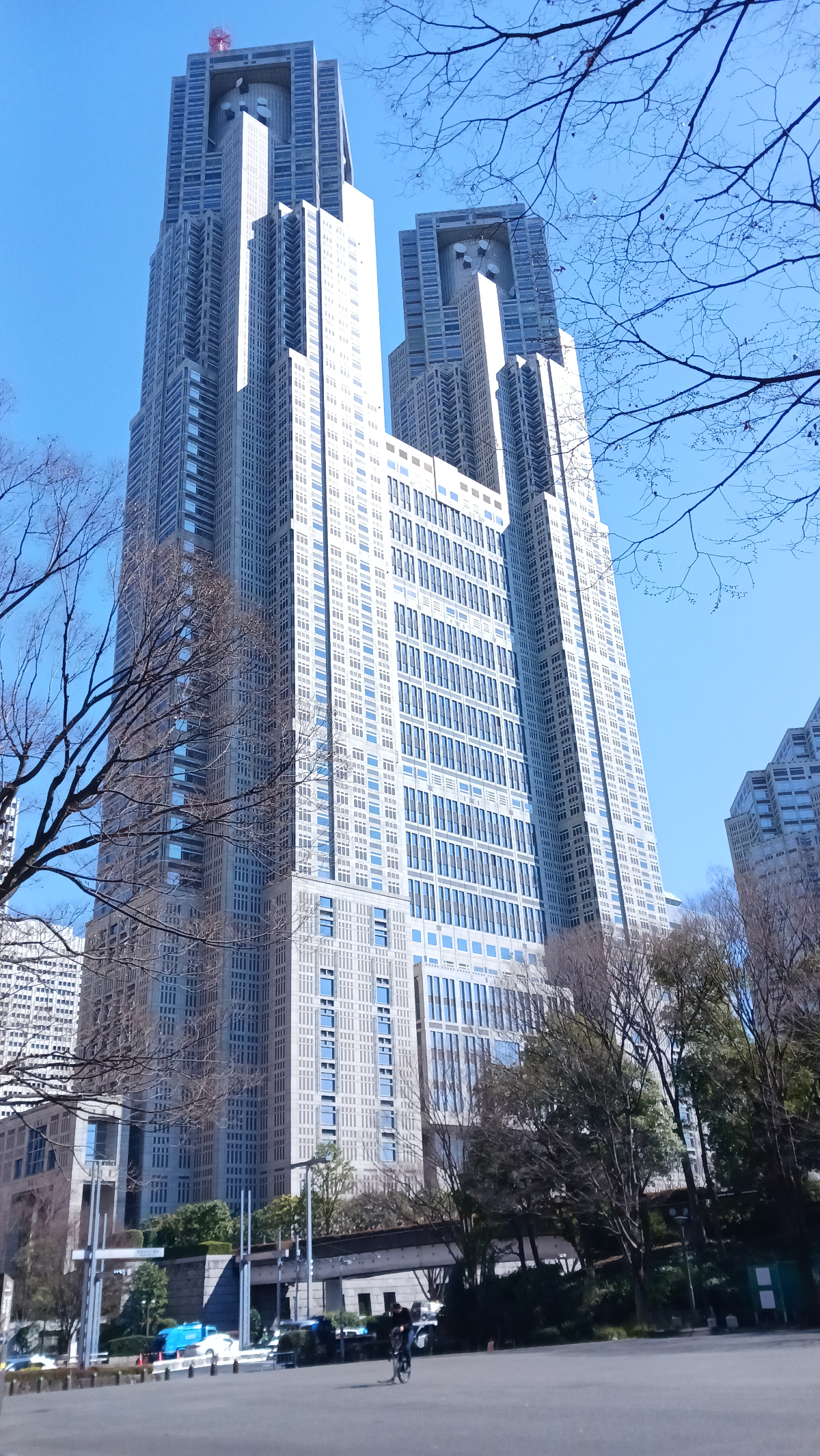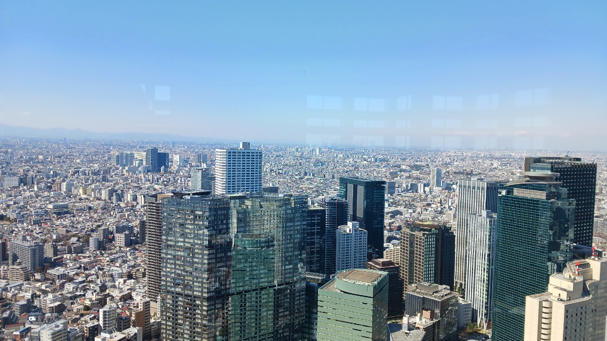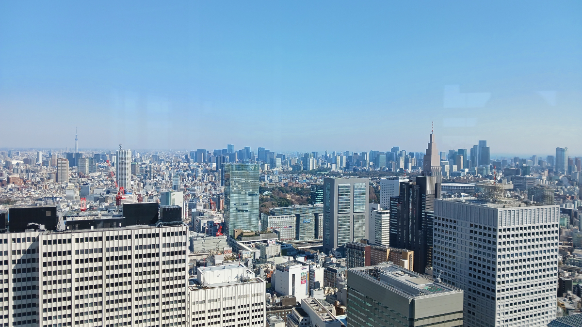 京王とか小田急とかの文字を見て非日常感を味わいつつ、しばらく大通りを歩きまして…都庁にやってきました。都庁には誰でも無料入れる展望室が設けられており、私は北展望室に登らせていただきました。