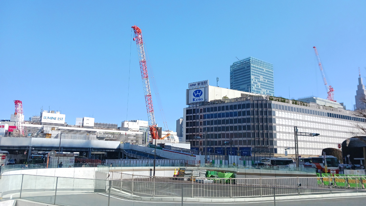 続いては新宿で下車。恥ずかしながら駅を出るのにかなり迷ってしまいました。周りの案内サインとか注視しながら歩いていたのですが、ずっと通路が仮設みたいな感じで、どこがどこに繋がっているのかが分かりにくく…というのが言い訳になります。